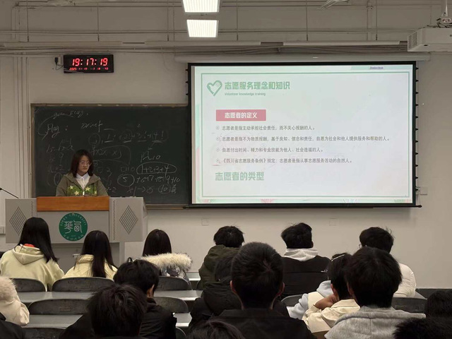 11月17日,bat365中文官方网站青年志愿者服务队面向25级能动三班,开展大学生志愿者通识培训。活动响应国家号召,旨在完善同学们志愿服务认知,强化志愿精神,提升专业能力与社会责任感。